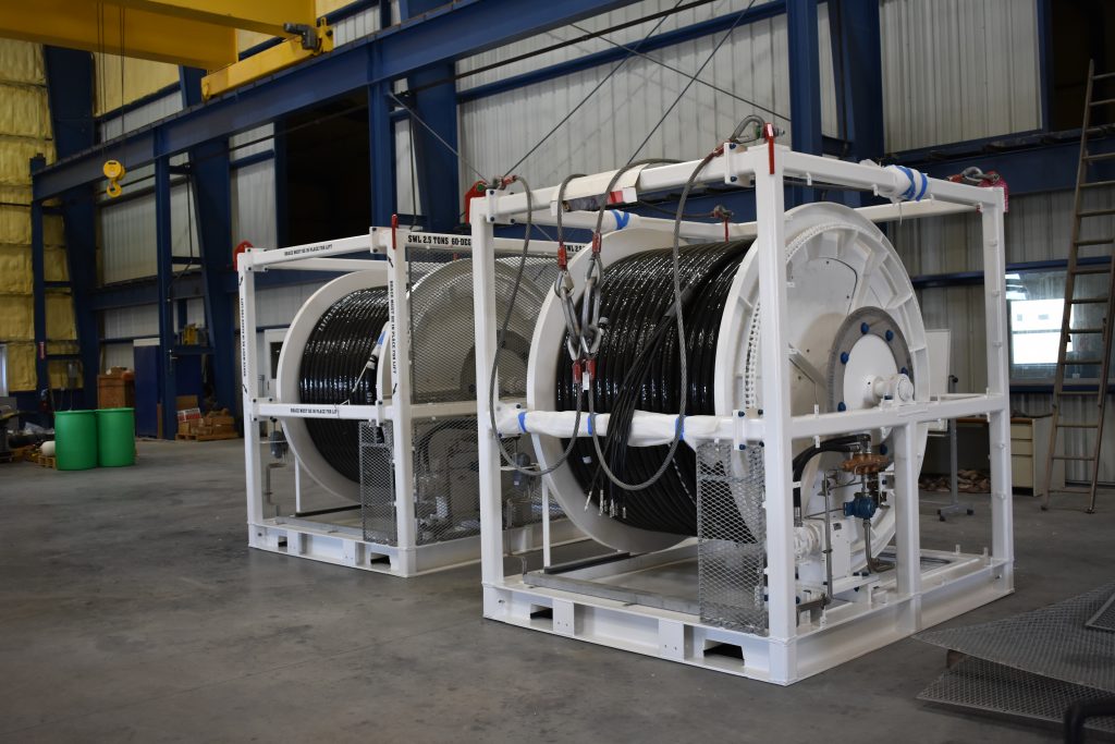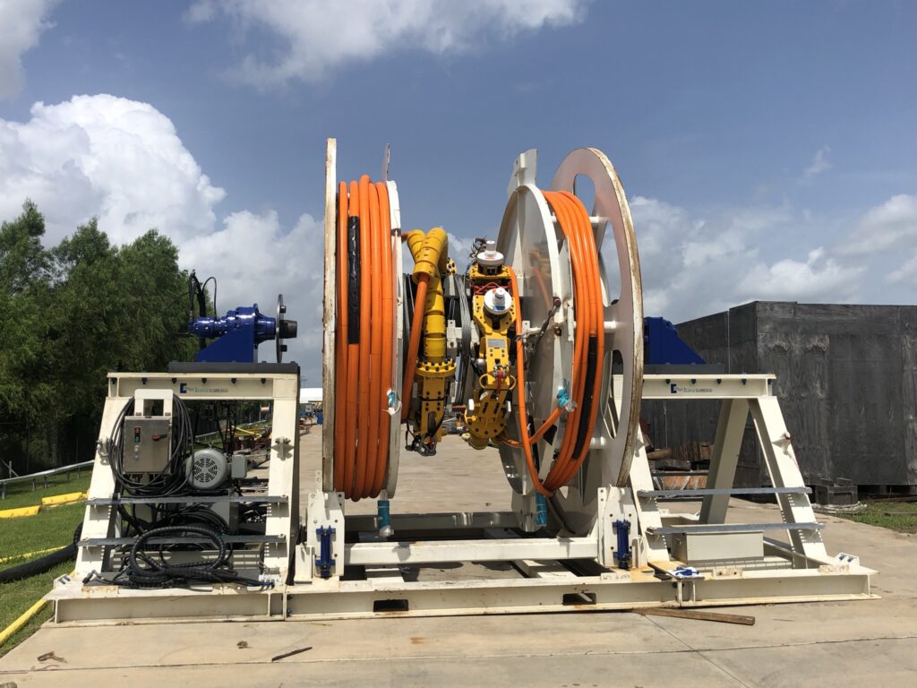 Some great-looking Steel Tube Flying Leads (SFL) was designed, built, and tested by Glittonequipment Inc in the final stages of preparation for deployment for a project in the Gulf Of Mexico. The SFLs incorporate cobra heads design and are built in-house by Glittonequipment. We utilized our in-house Reel Drive System (RDS) and reels to spool and assemble these SFL’s for deployment. Qur RDS is available for rental for your next installation. Contact us for your subsea distribution and installation needs. Visit our products page for more information