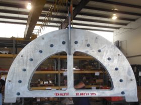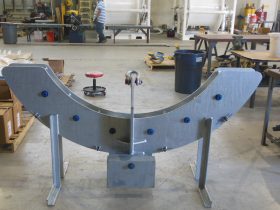 Storm loop sheaves are counter-weights that allow a service loop within the system. The storm loop sheaves are designed and manufactured in-house including fabrication, coating, assembly and testing.